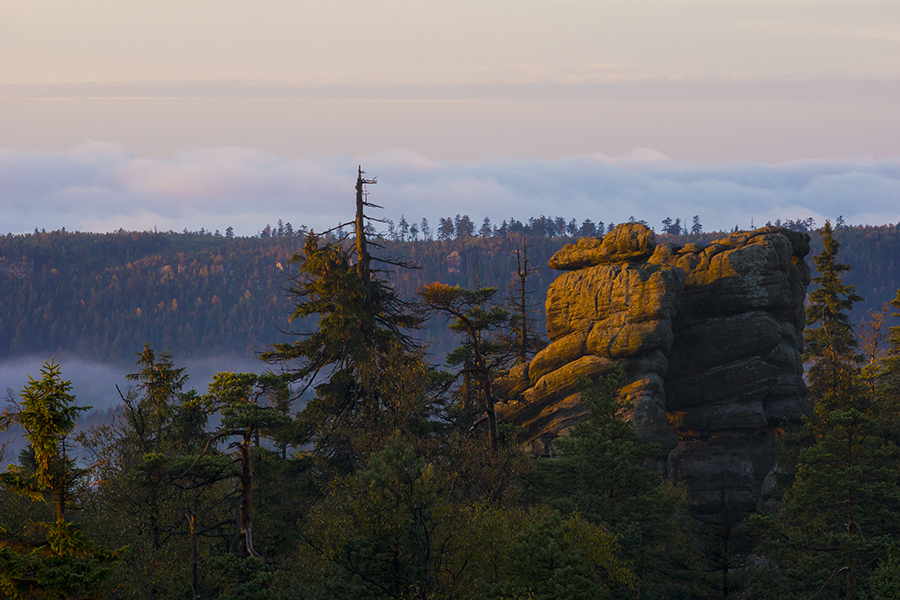 W ostatni weekend miałem okazję fotografować w Górach Stołowych. Z powodu tego, iż warunki odpowiednie były tylko w niedzielę z rana (w piątek i sobotę padało) wybór padł na Szczeliniec Wielki – najwyższy szczyt (919 m n.p.m.) w Górach Stołowych, na terenie Parku Narodowego Gór Stołowych. Należy on do Korony Gór Polski i jest jedną z największych atrakcji turystycznych Sudetów, z rezerwatem krajobrazowym i tarasami widokowymi z panoramą Sudetów.
