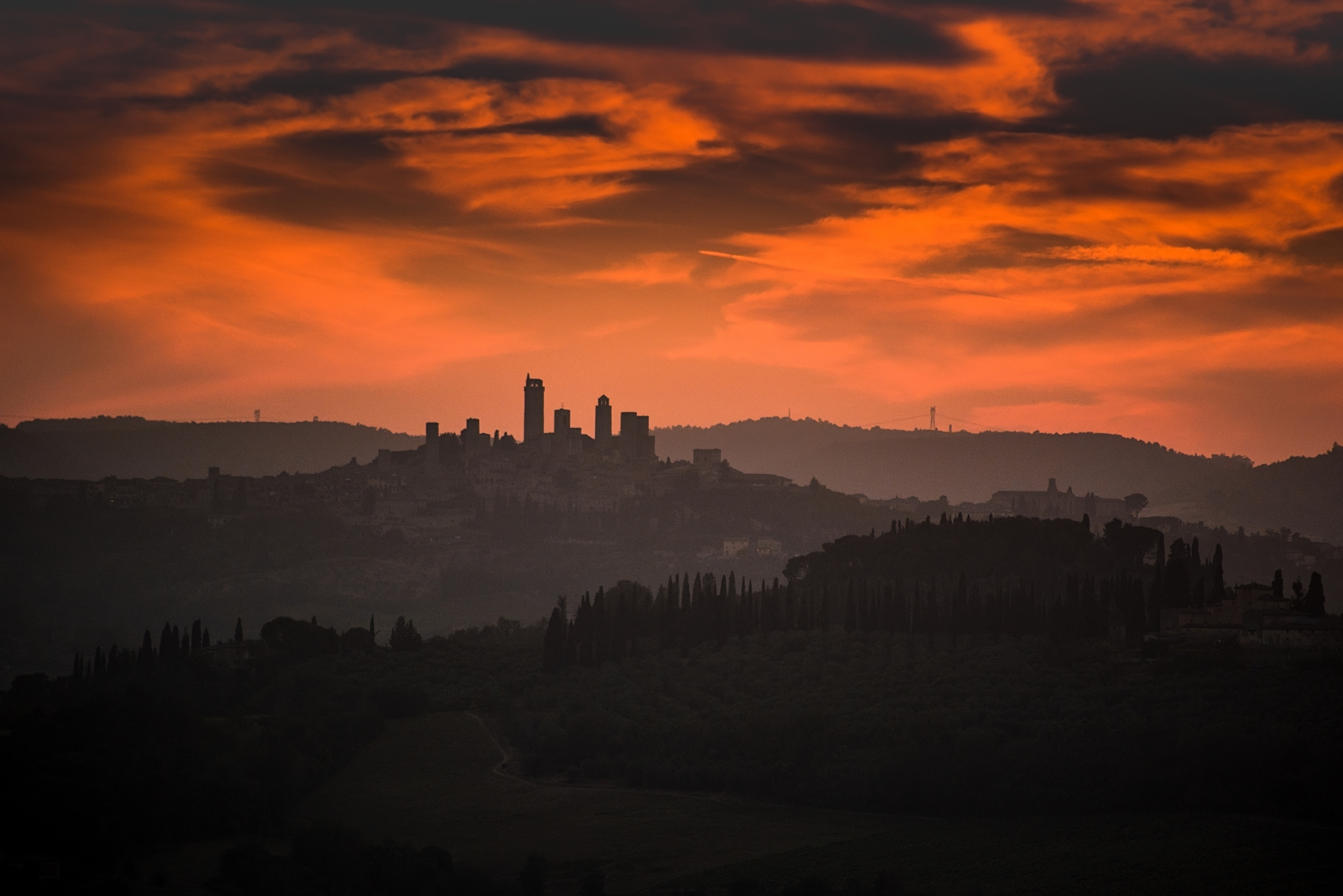 zachód słońca nad San Gimignano