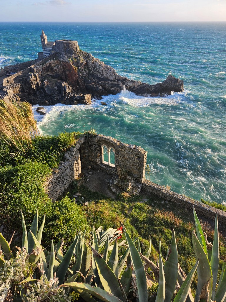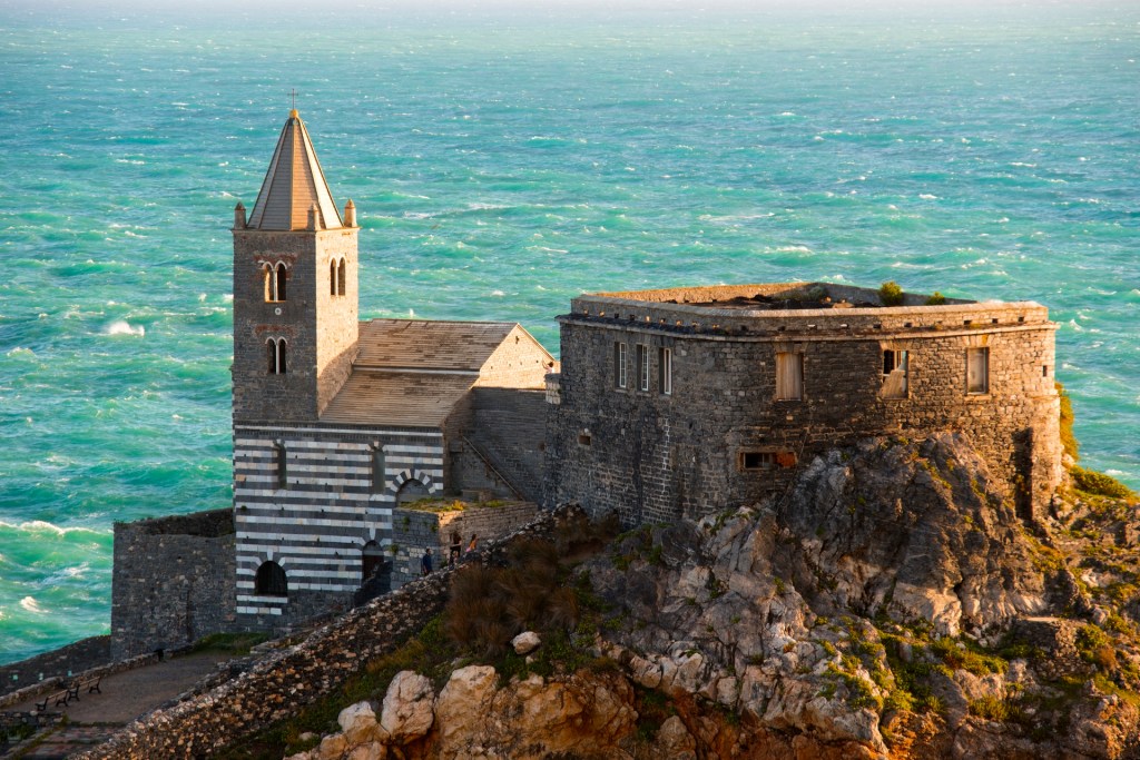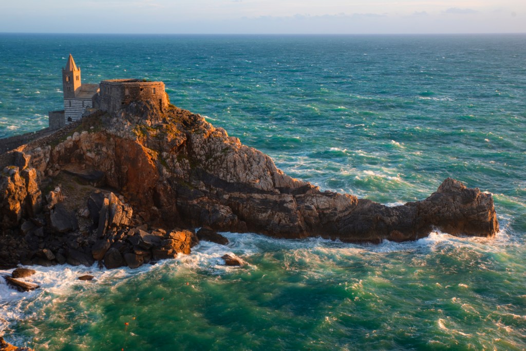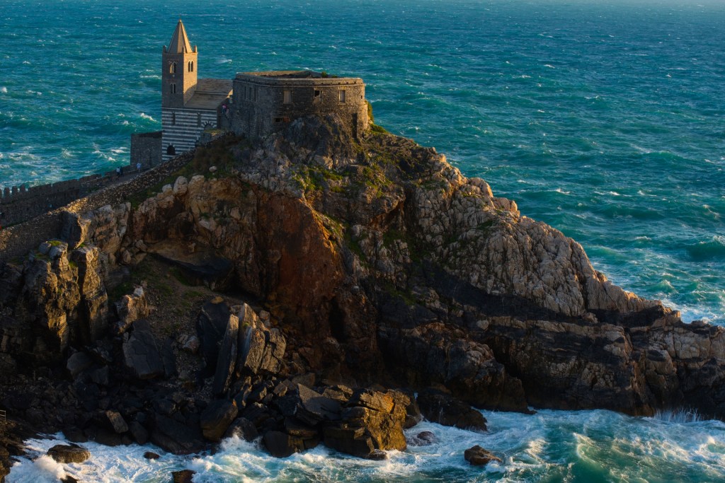 Na końcu drogi, tam gdzie Liguria spotyka się z otwartym morzem, leży Portovenere. Miasteczko wznosi się na skalnym cyplu, z którego wyrasta gotycki kościół San Pietro, zbudowany dosłownie nad przepaścią. Kiedy fale są wysokie, rozbijają się o skały tuż pod murami świątyni – tworząc widowisko, które trudno zapomnieć.