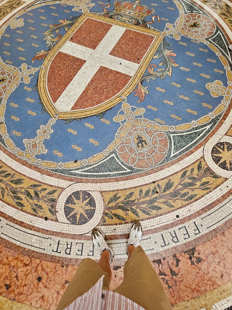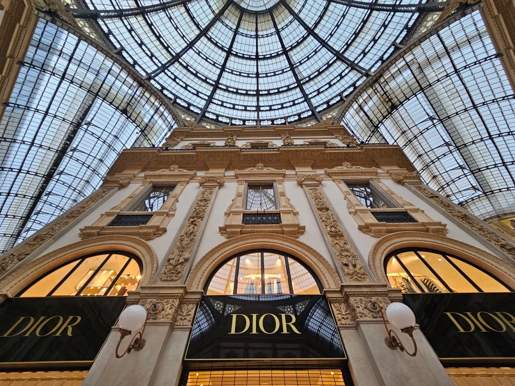 Spacer najlepiej zacząć w sercu miasta – Galleria Vittorio Emanuele II to świątynia włoskiego stylu i światła. Powstała w XIX wieku, a jej ogromna, przeszklona kopuła i mozaikowe posadzki tworzą niezwykłą scenerię dla fotografa. Warto spojrzeć w górę – symetria konstrukcji i światło wpadające przez dach są idealne do uchwycenia w szerokim kadrze.