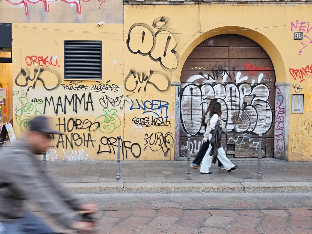 Tym razem nie szukałem monumentalnych kadrów, jak w Duomo. Chciałem poczuć miasto takim, jakie jest – z jego hałasem, zgiełkiem i barwami. Mediolan, widziany przez obiektyw, potrafi być niezwykle dynamiczny.