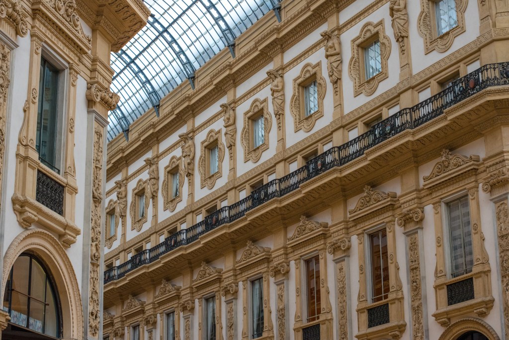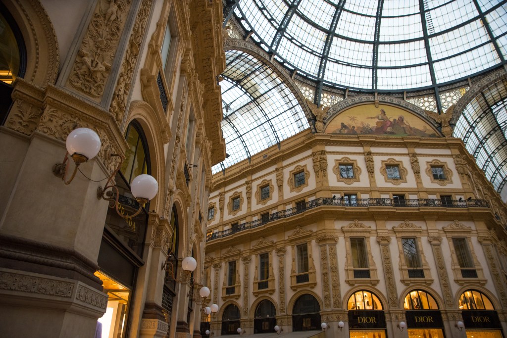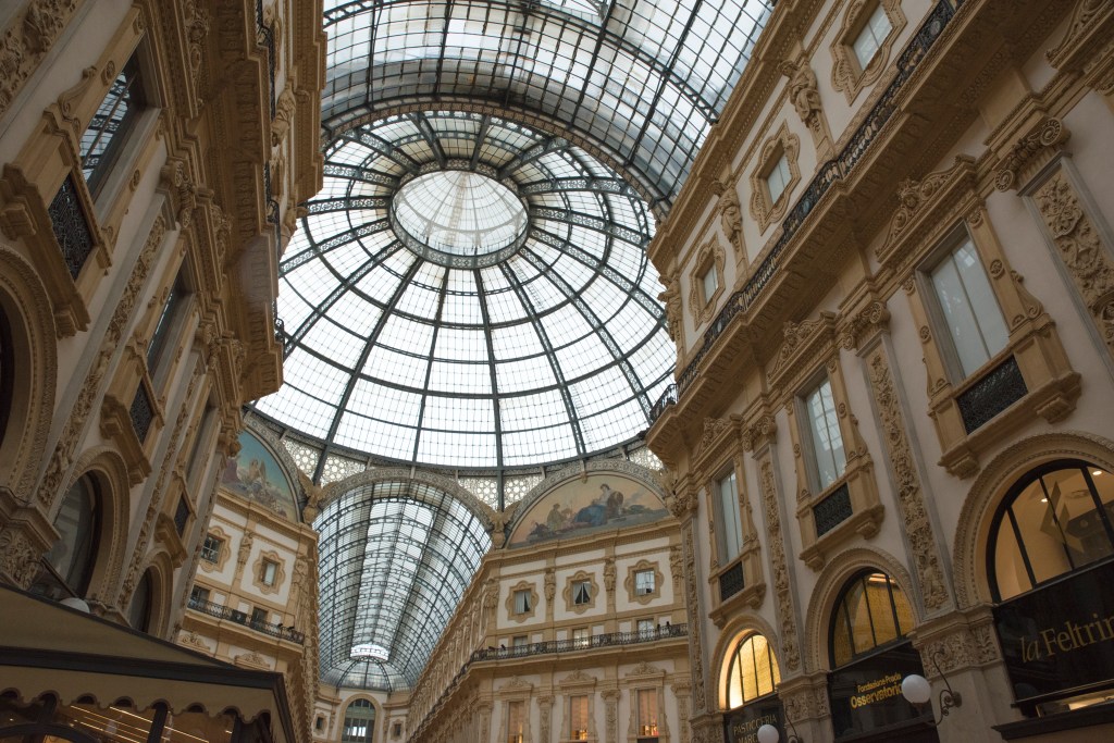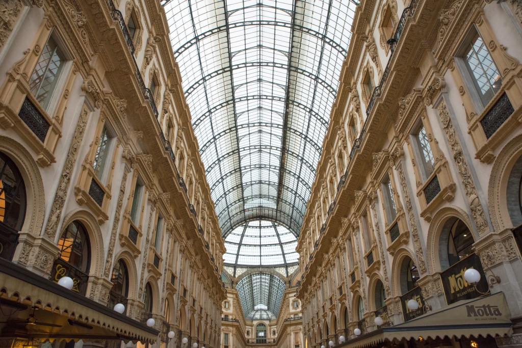 • Galleria Vittorio – szeroki kąt, fotografuj w pionie, zwracając uwagę na symetrię i refleksy.